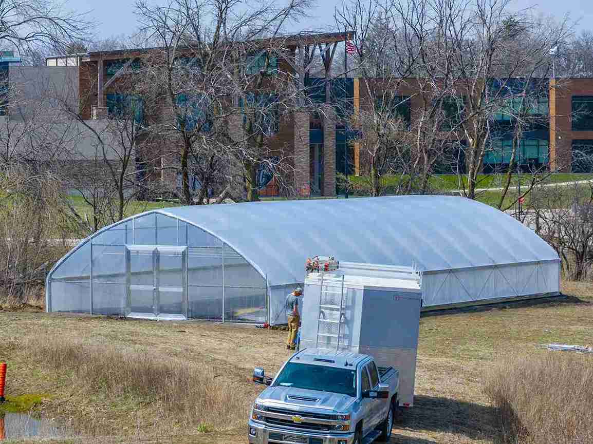 A generous community member donated a used 30′ x 72′ Nolt’s high tunnel to Charles City High School to support hands-on agricultural education. Quality Structures was proud to assemble the structure, upgrade several components, and install new gable ends and doors to ensure long-term durability and performance.