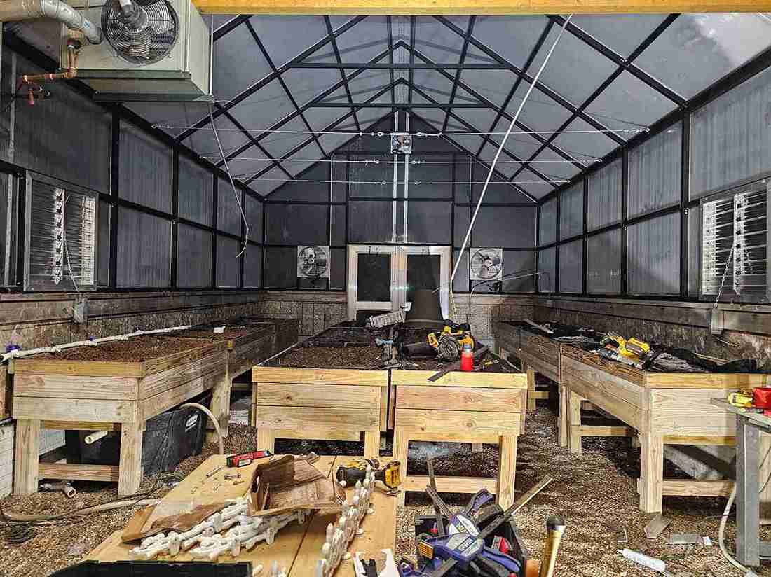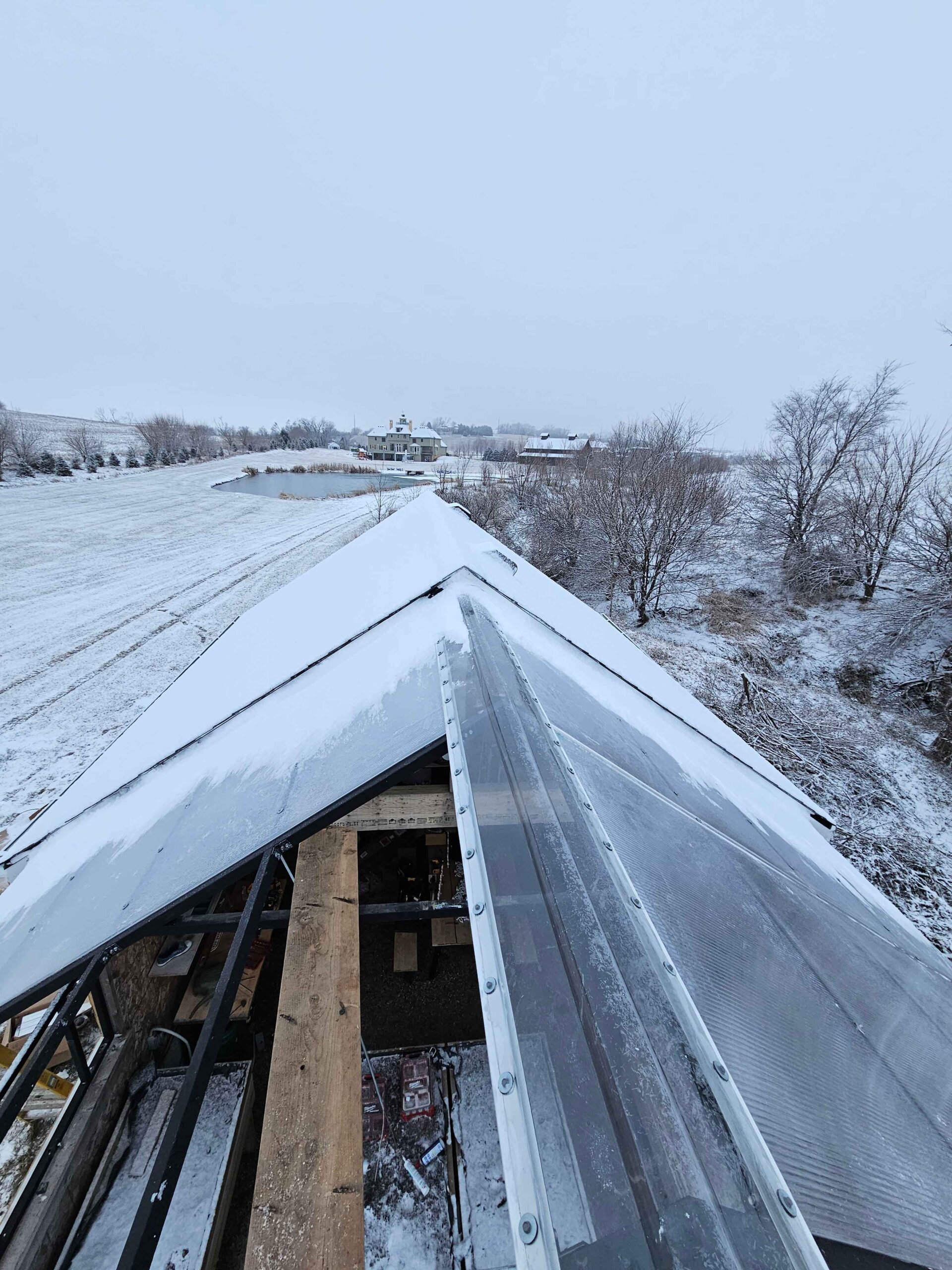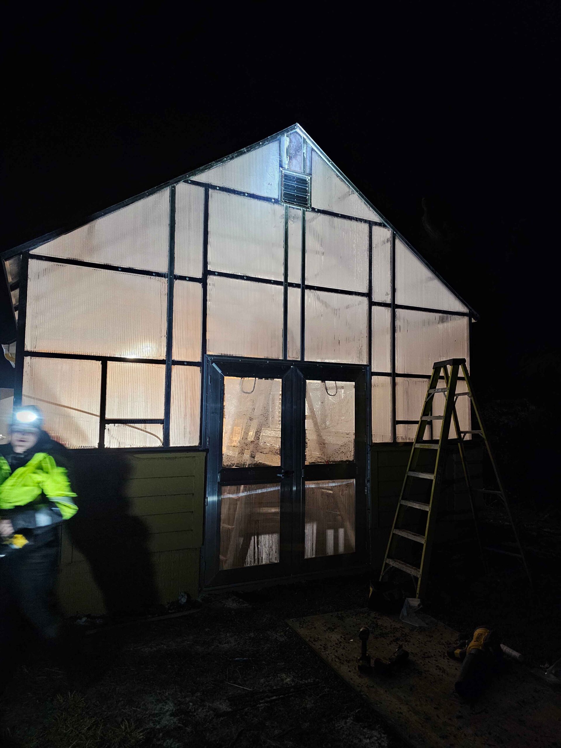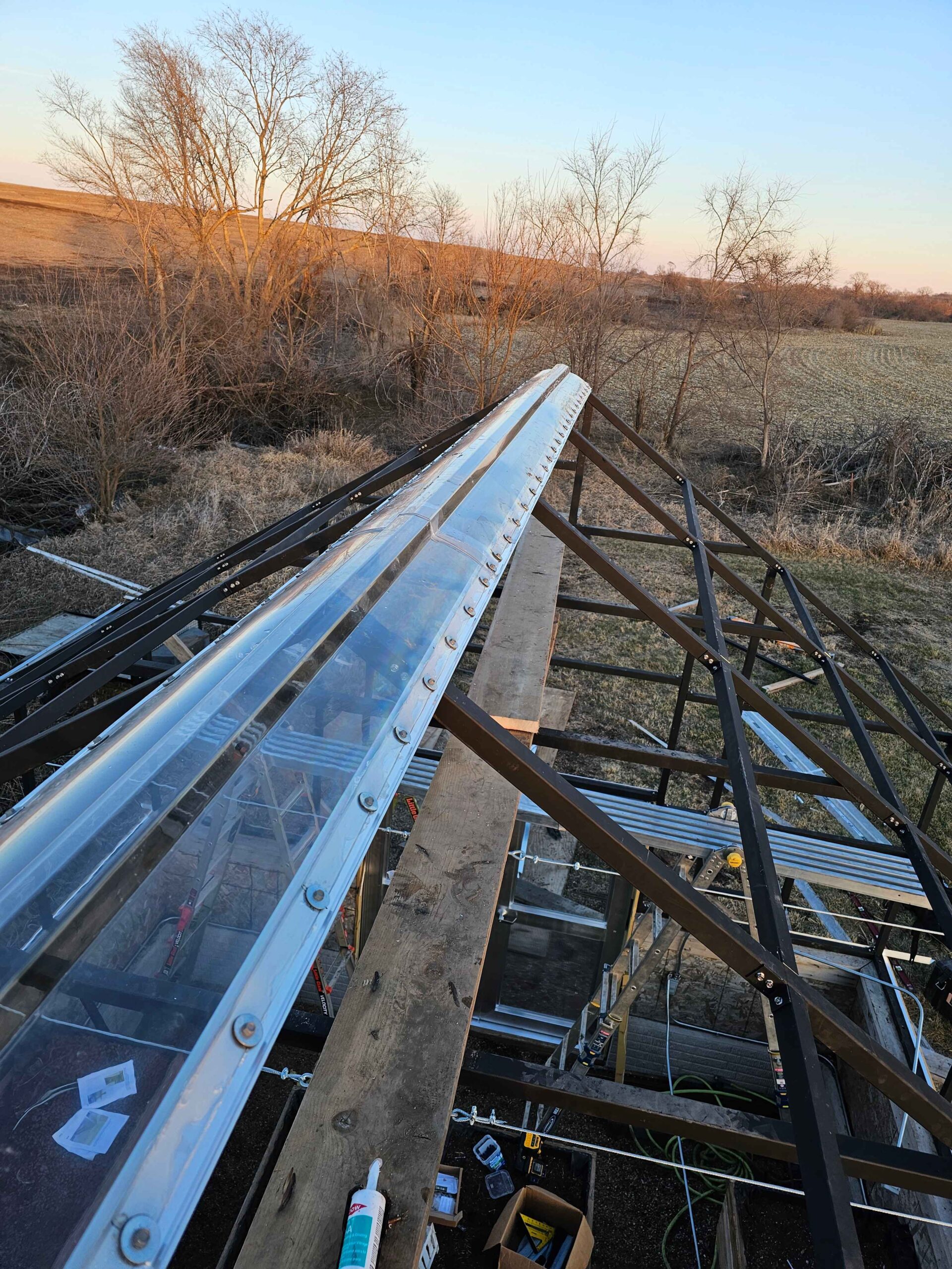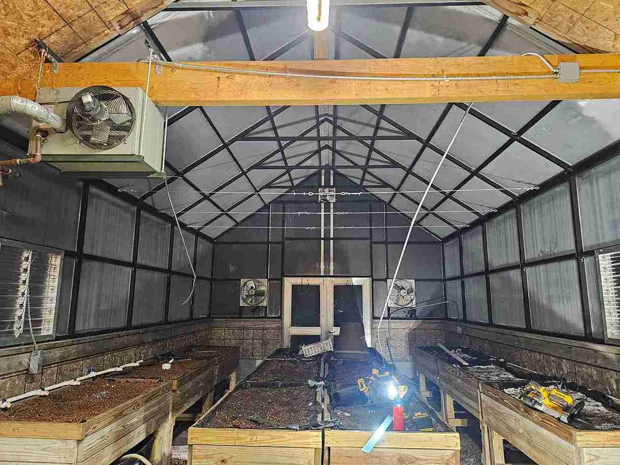 In a small development in Bennington, the tornado damaged homes and destroyed a small greenhouse attached to an outbuilding. The contractor in charge of repairing the home on this property contacted Quality Structures to rebuild the greenhouse. Due to the non-standard size, and the need to match the profile of the existing building, Quality Structures built the greenhouse from scratch, pre-fabricating and welding the walls and trusses off-site. The roof is sheeted in polycarbonate while the sidewalls are sheeted in twin-wall acrylic panels for increased light transmission. Finishing off the build is a beautiful aluminum double hung door from HC Quality Doors