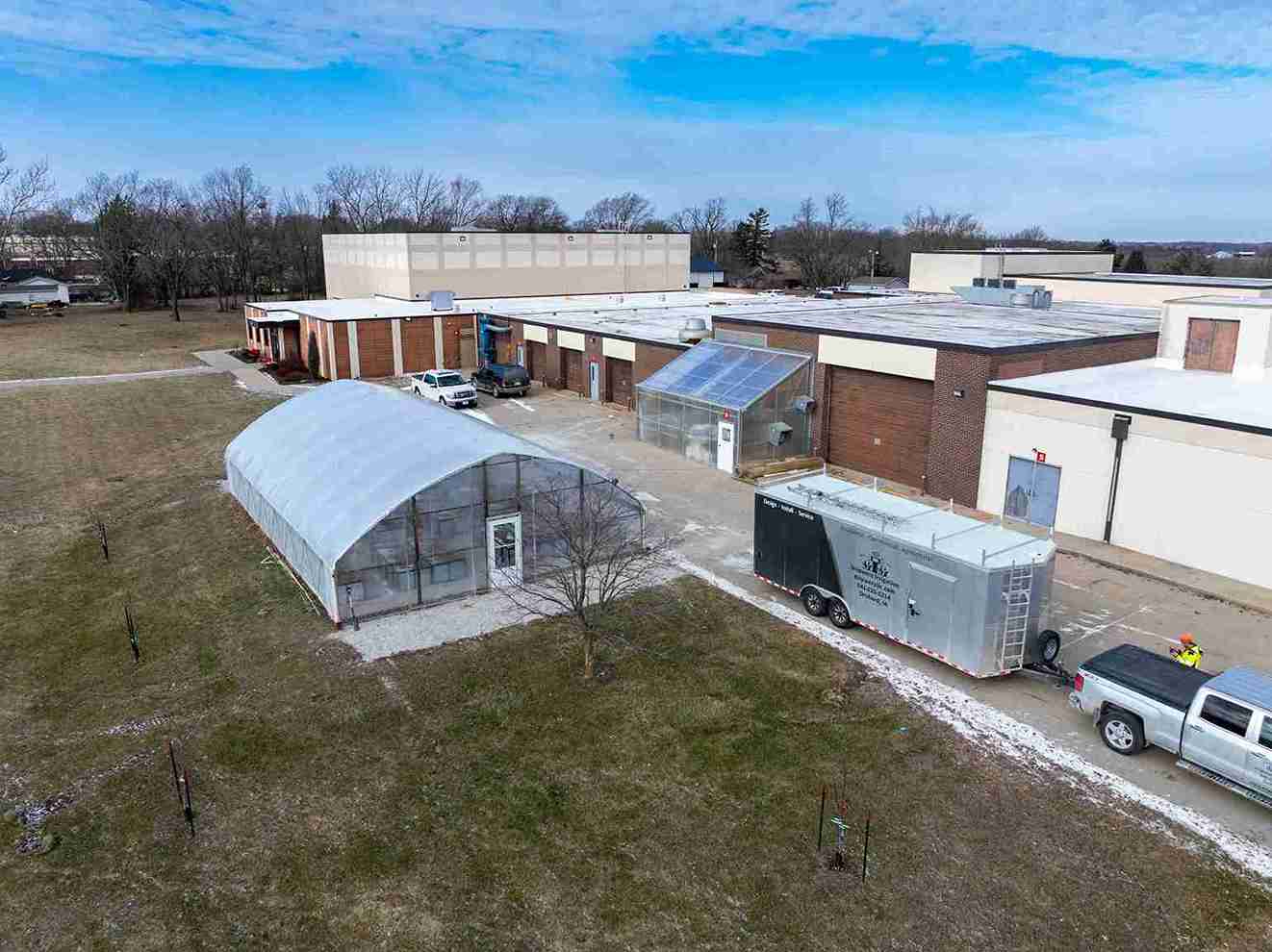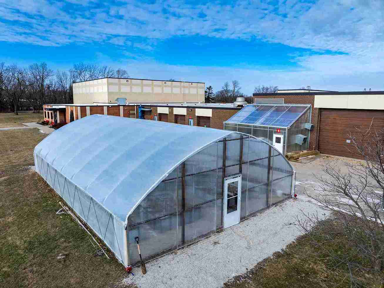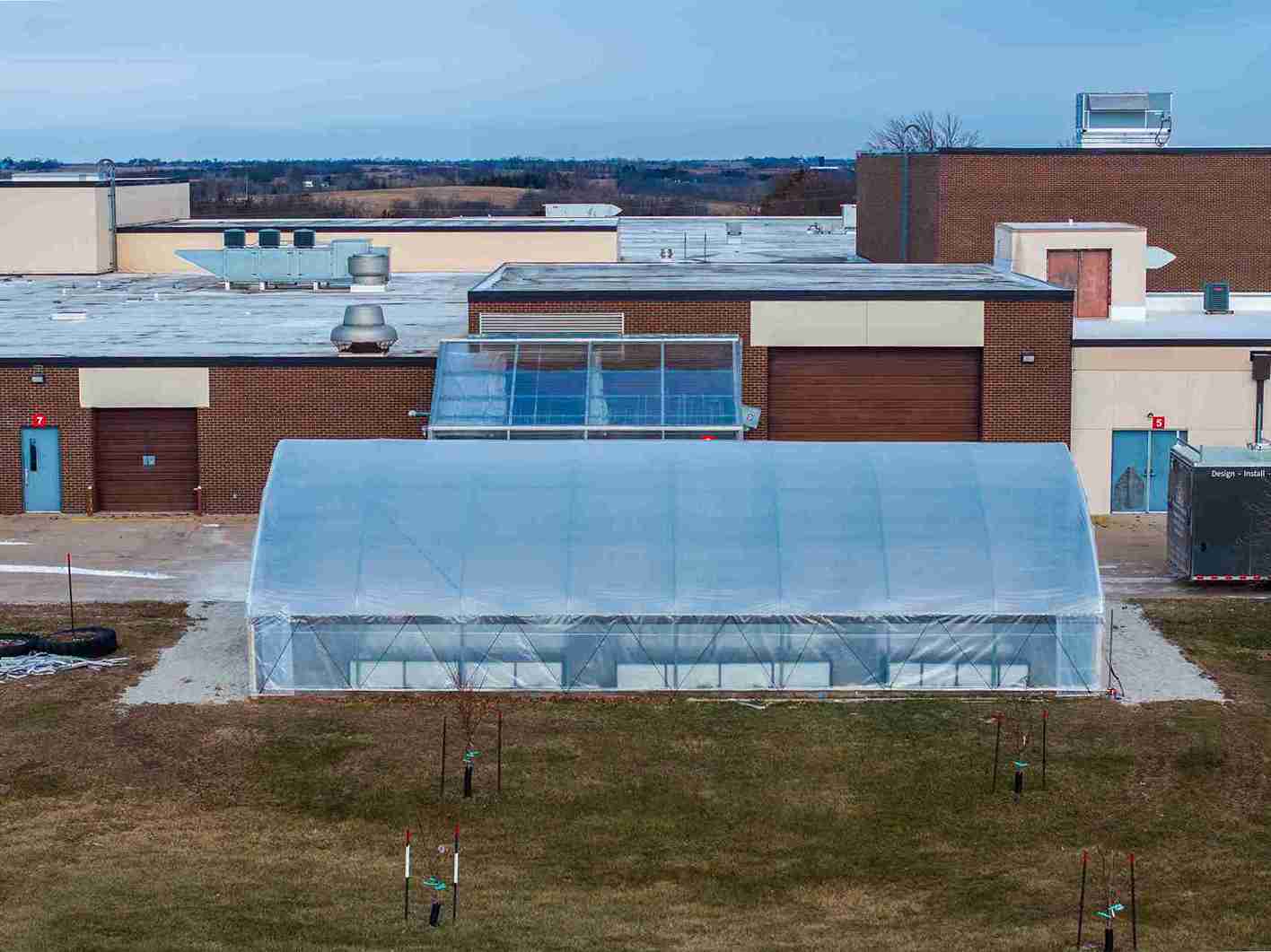 Installing new inflated poly film roof on high tunnel